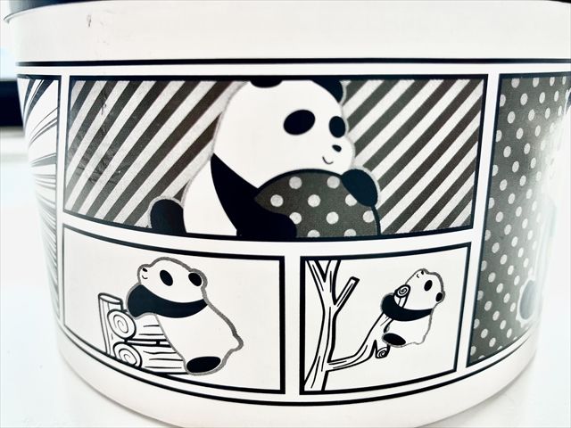 箱にはいたるところにパンダがいます。このパンダ、ゆるい見た目で、とても癒やされますね。