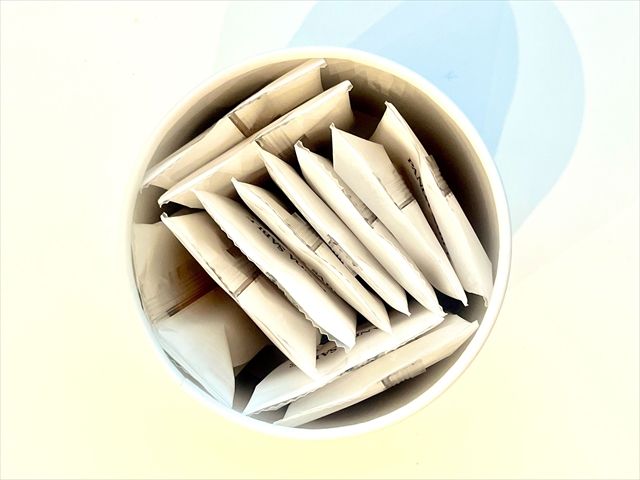 今回は透明のコップに牛乳を入れてみました。薄い茶色のサブレと牛乳の白色が合っています。