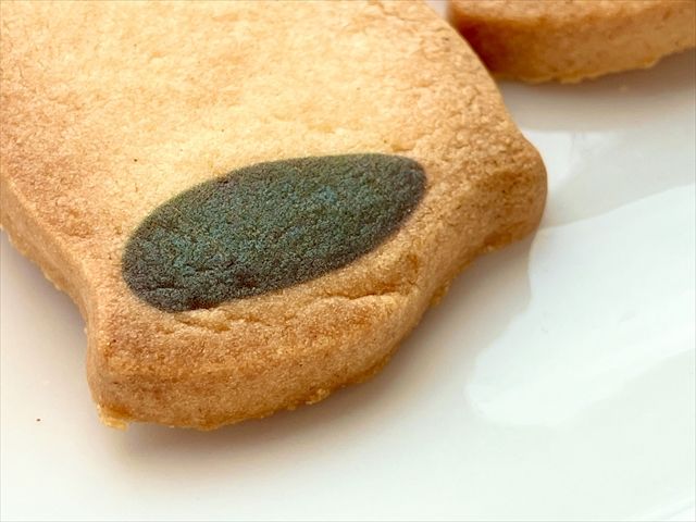 青色の線が少し気になりますが、この青色はサブレにプリントされている黒色が、牛乳に浸して溶け出たものです。