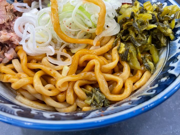 油そばという名前ですが、油がギトギトした感じではなく、タレの風味の方が強いので味が濃く、でも胃もたれせずとっても食べやすいです。 チャーシューとは別に細かく切られたお肉も入っているので、食べるたびにお肉の風味も感じられて美味しい。
