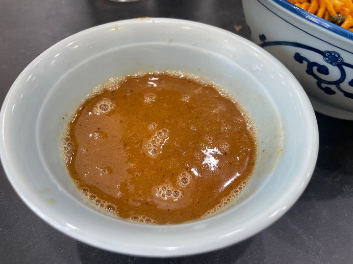 油そばとまぜそばは、最後に割スープをいただけます。 残した麺にかけても、つけ麺のようにつけても、お好みで。 割る前のラーメンスープなので、ラーメンの味もちょっと味わえてしまうのがお得感があります。