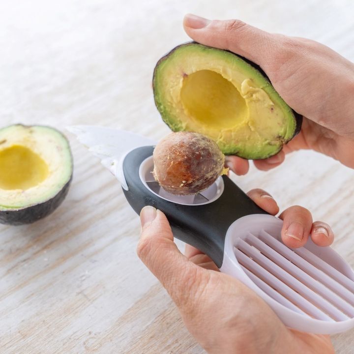 こちらはアボカド専用のスライサー。カット・種を取る・スライスの3ステップを快適にこなせます。