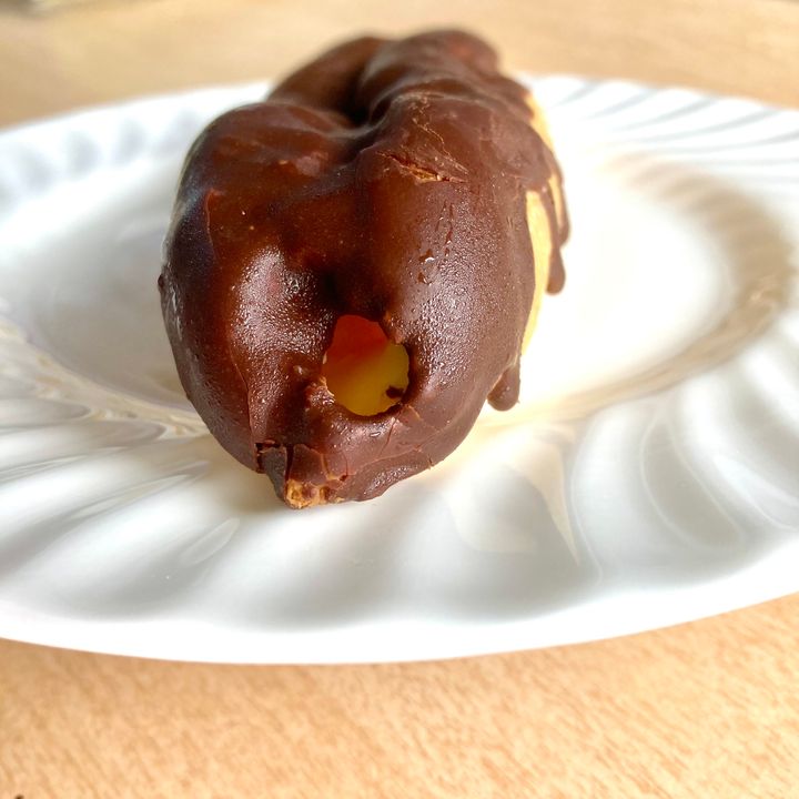 食べているうちに、エクレアの片側に空いていた穴からクリームが逆流して出てきそうになるので、ここはこぼれ出ないように注意して食べることをお勧めします!
