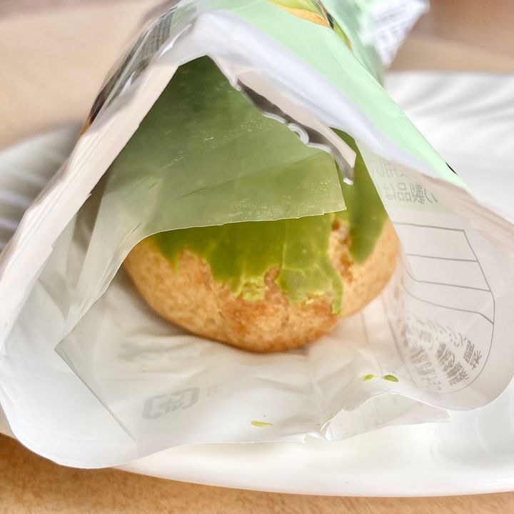 中身のクリームは全体的に“抹茶味のカスタード”というよりも“抹茶味のホイップクリーム”感が優勢で、カスタードを求めて食べるとちょっと「あれ?」と思うかもしれないですが、私はスイーツ全般、そして抹茶が大好きなので非常においしく食べれました。