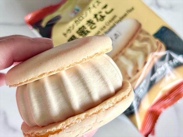 とろける黒蜜ときな粉のやさしい風味や、マカロンの食感も楽しめる「7プレミアム トゥンカロンアイス 黒蜜きなこ」。気になる人はチェックしてみてくださいね。
