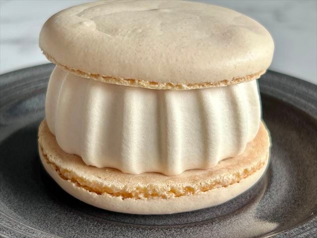 「きなこアイス」はとてもなめらかで、サクッホロッとした「きなこマカロン」との食感のコントラストもたまりません……。