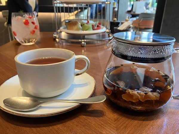 アフタヌーンティーのほかにも、バラの花びらをブレンドした「ローゼンテーミットブルーテン」など、ドイツの有名な紅茶専門店であるロンネフェルト社の紅茶やコーヒーが飲み放題なのもうれしいですね。