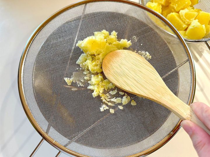 1.じゃがいもは皮を剥いて乱切りにし、茹でたら湯を切り、熱いうちに裏ごしする。