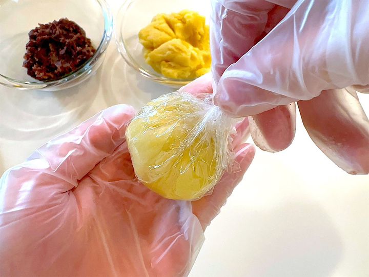 裏ごしの作業も、ラップで包んで茶巾しぼりにする作業も、子どもと一緒に楽しめますよ♪