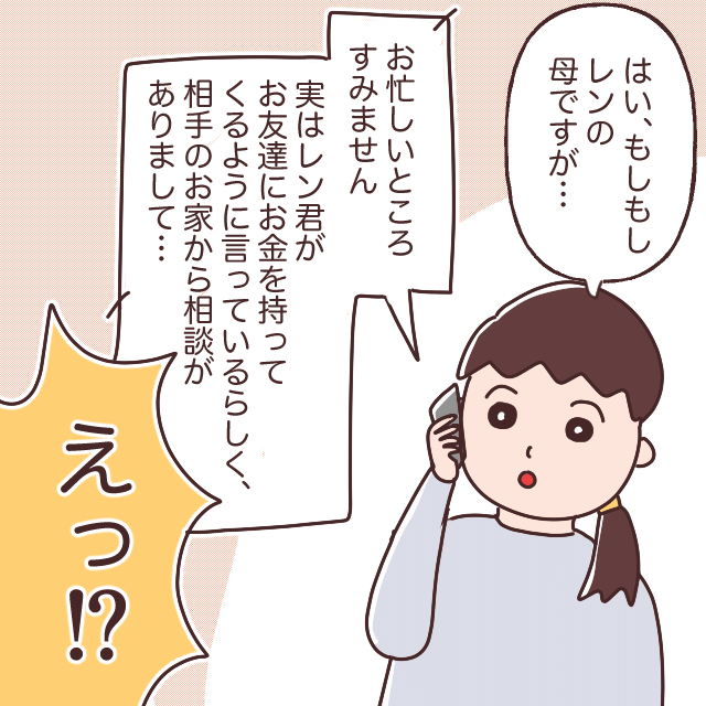 「お忙しいところすみません。実はレン君がお友達にお金を持ってくるように言っているらしく、相手のお家から相談がありまして・・」