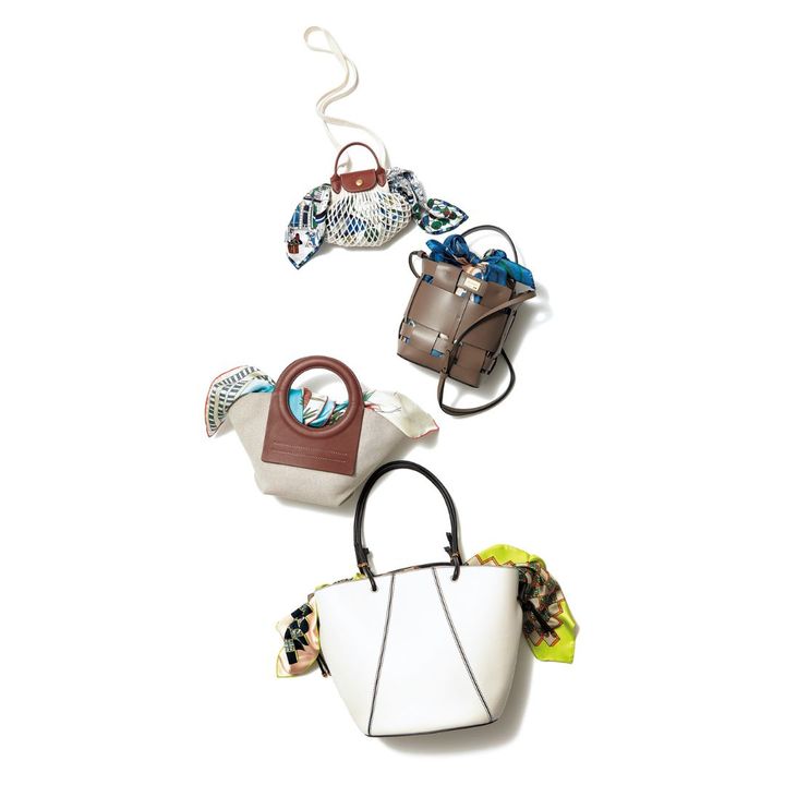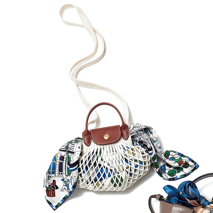 ネットバッグとスカーフの組み合わせで何通りものアレンジ可能