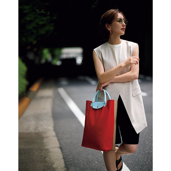 即完売『ビッグトート』再来!涼しげブラウス合わせで夏の鉄板コーデ