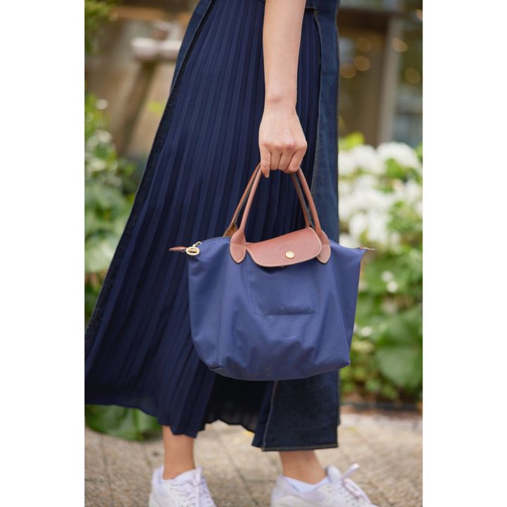 ロンシャンを代表するコレクションで、世界各国で親しまれているアイコニックなル プリアージュ®は、折り紙に着想を得て作られたもの。フランス語で「折りたたむ」という名の通り、コンパクトにできて機能的なところも魅力です。シグネチャーレザー製のハンドル/フラップとスナップボタンが特徴で、2023年にはボディのナイロンからパーツに至るまで再生素材に切り替えたサステナブルなところも選びたくなる理由です。丈夫で軽量、さまざまなシーンに対応できるデザインは、多くの人から愛されています。