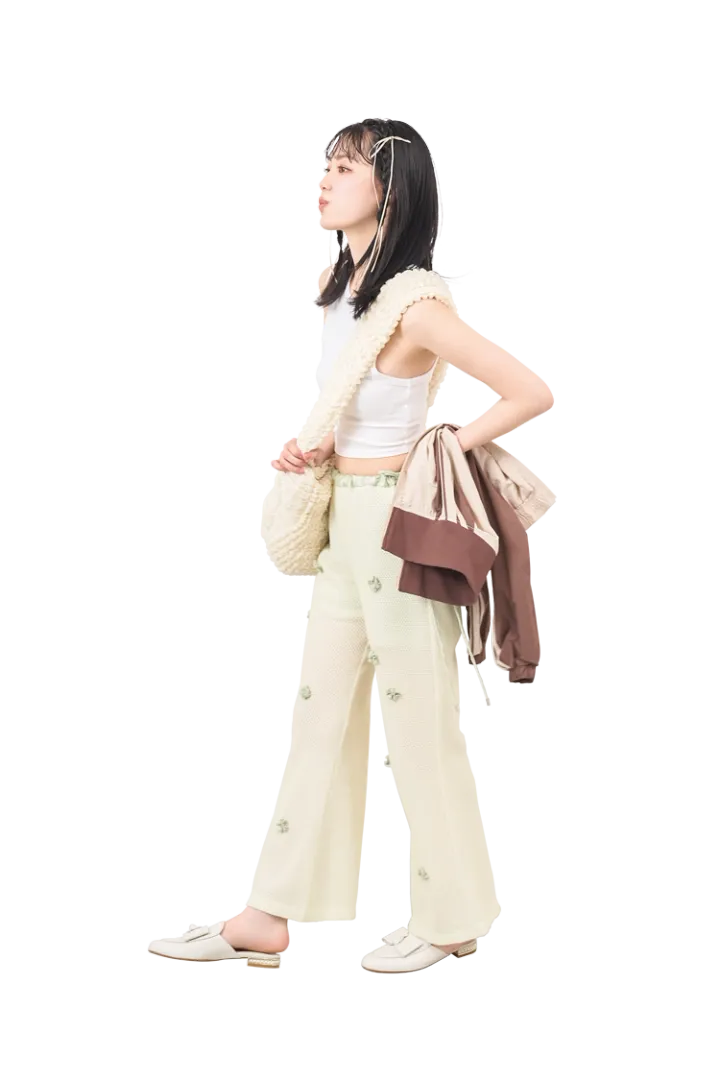 3. 1枚でスタイリングの幅が倍増!「バラモチーフつきパンツ」の着回し術♡