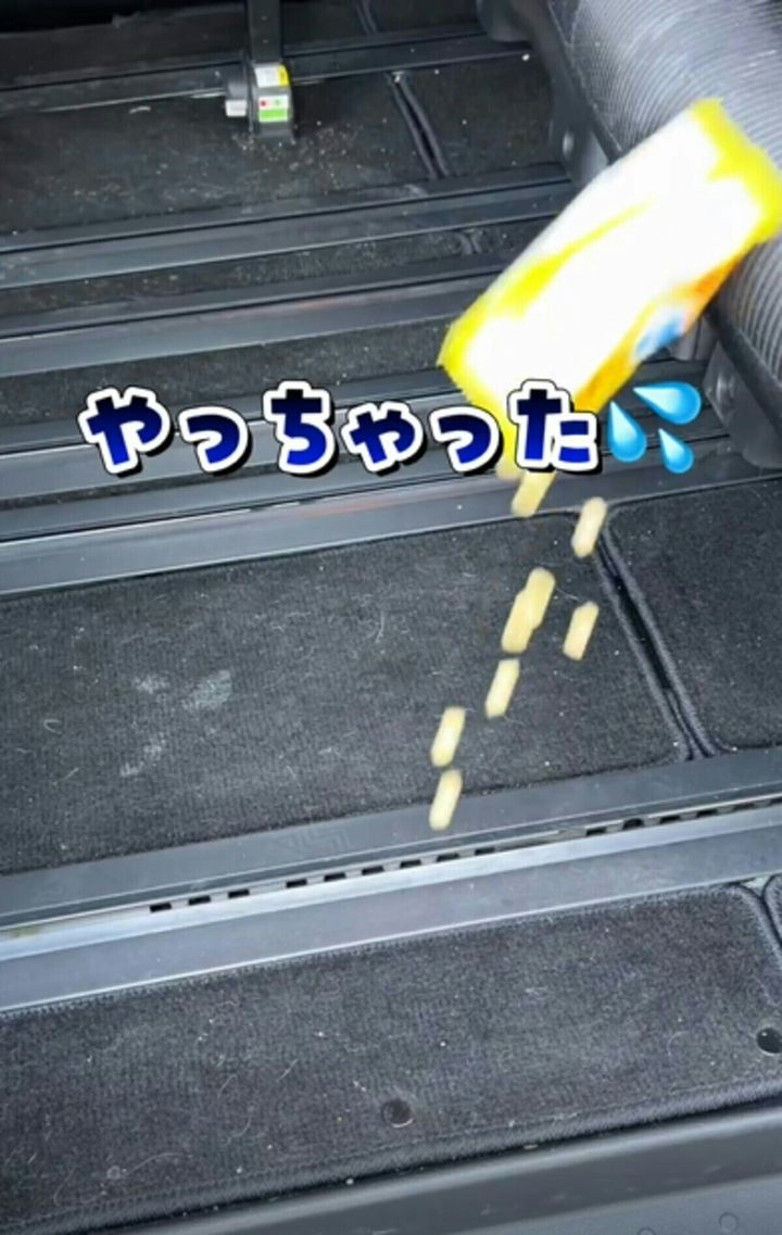 子どもはお菓子が食べられなくなったことで不機嫌に…お菓子がこぼれた車内を見てママやパパも泣きそうになりますよね。「やってしまった」と思ったその瞬間、もう時は戻せません。