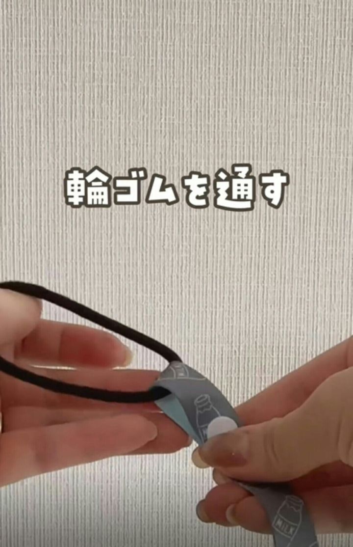 ボタンを外してゴムを通し、再度ボタンを留めておきます。
