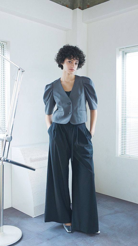 チャコールボリュームスリーブ半そでジャケット /uncrave STANDARD(uncrave) ショート丈に加え、胸元のVの切れ味が効果的。