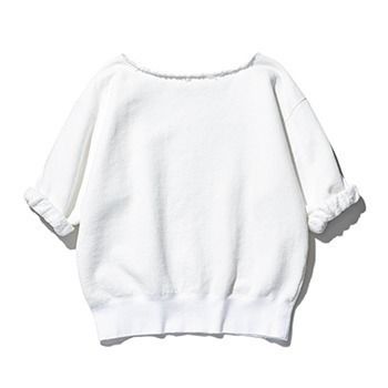 白ハーフスリーブスエット /ブリル(ブリル ニュウマン新宿) 丸みのあるシルエット、フリルのようなそでのフェミニンなデザインと、カジュアルなスエット地がマッチ。肉厚な生地の半そでは、微妙な気温の時季にも好都合。