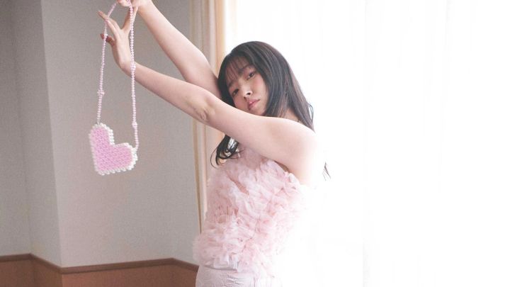 ピンクサテンスカート 8,980円、ピンクチュールビスチエ 9,980円/ともにKatrin TOKYO ハートバッグ 4,290円/NADIA FLORES EN EL CORAZON サンダル 22,000円/ダイアナ(ダイアナ 銀座本店)