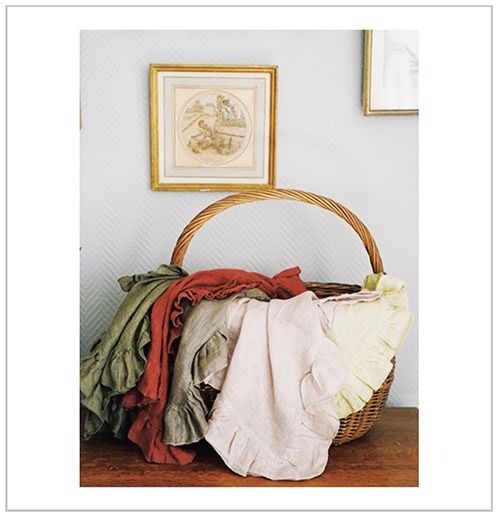 ボルゴ デレ トヴァーリエ フリルナプキン 各 2,970円/ASAHEI 「見せたくないところを隠しながら、空間に彩りを与えてくれるリネンナプキン。イタリアブランドならではのカラーやリネンの質感が絶妙で何色も買ってしまいました。」(守屋百合香さん・フラワースタイリスト)@maisonlouparis
