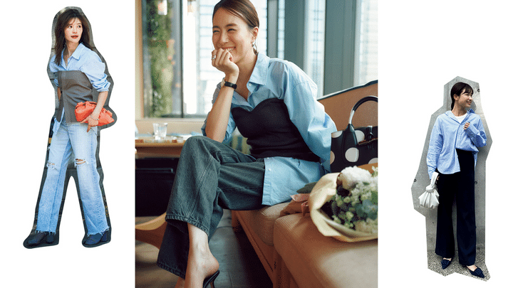 キレイめコーデに欠かせないシャツ。一枚でももちろん素敵ですが、今年はレイヤードを楽しむのもおすすめです。外側に重ねても内側に仕込んでもサマになるコーディネートを、トレンドのブルーシャツを使ってご紹介します。