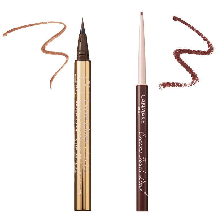 ほのかな赤みのあるあずきブラウン。上のまつ毛の間を埋めるようにラインを。キャンメイク クリーミータッチライナー 07 ¥715(井田ラボラトリーズ)