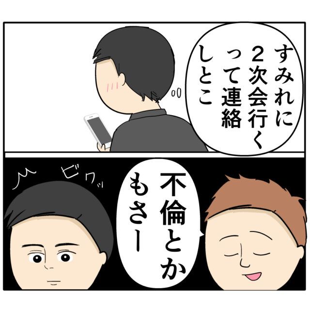 当の良し男さんは、『2次会に行く』とすみれさんにメッセージをすることに忙しく、背苦腹さんの話は全く聞いていませんでした。それでも