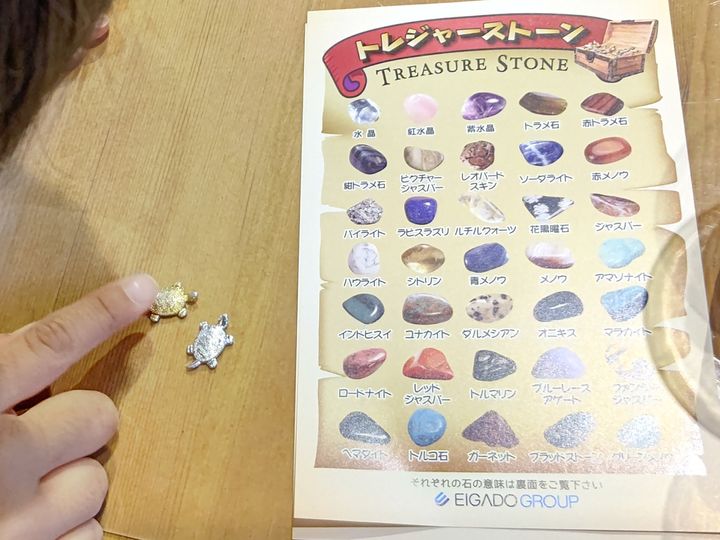山盛りのゴムチップの中に金、銀の小さい小さい亀がいるとの事。