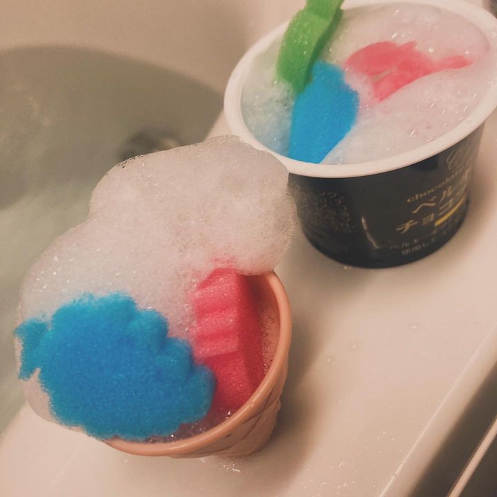 ボディソープを入れたらOK!お風呂場でアイスクリーム屋さん♪スリコのおもちゃが楽しい