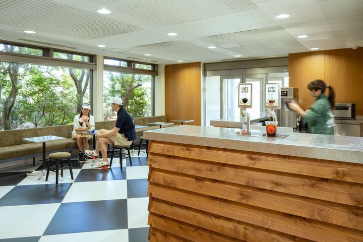 ゴルフ後は疲れた体を癒すおもてなしがたくさん。クラブハウス内にはコールドブリューなどの本格コーヒーが楽しめる「Pacific STND-IN」が。その他にも、東京・白金の人気ピラティススタジオやマッサージ室も併設されている。