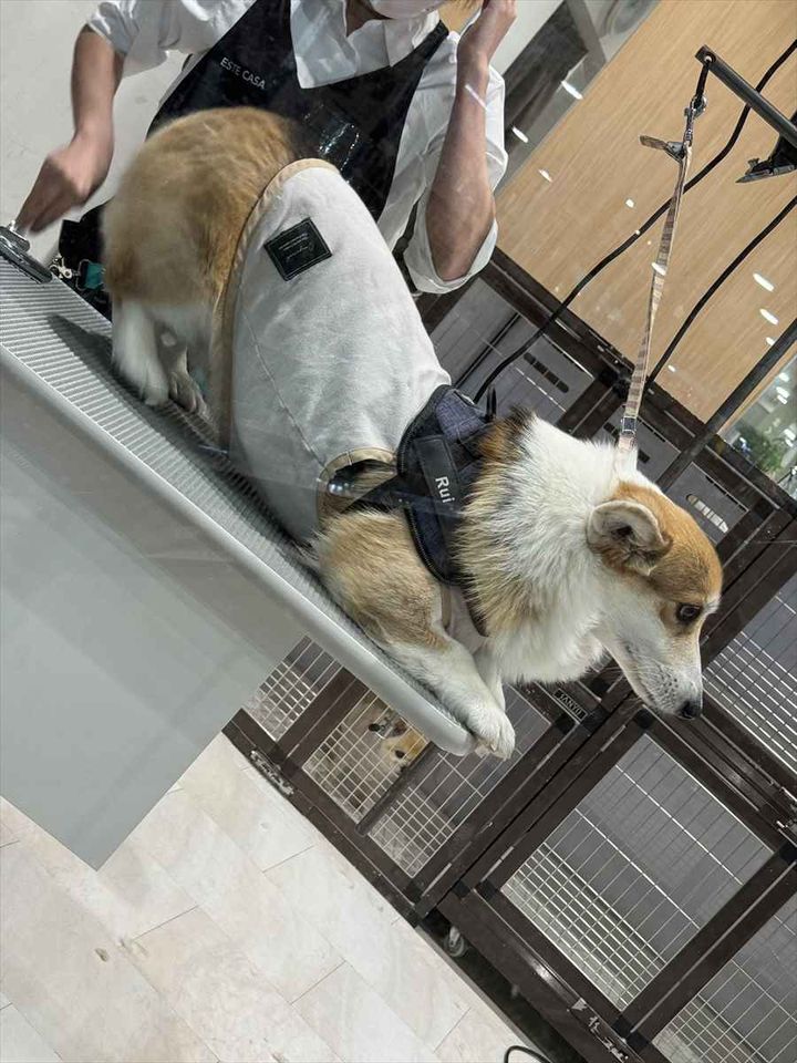 ご紹介するのは、𝐑𝐮𝐢|aichi corgi(@wmpsk)さんがXに投稿された写真。 ウェルシュ・コーギーの『ルイ』くんをグルーミングに連れて行った時の事です。