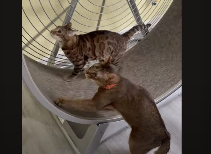 3. 回し車で走る猫! 使い方が独特だけど、運動になるの?