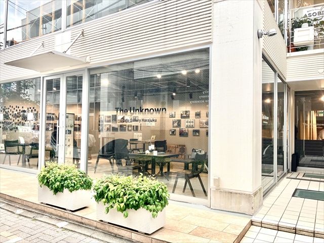 原宿の裏路地にある「The Unknown Café Gallery Harajuku」。明治神宮前駅から徒歩約3分です。
