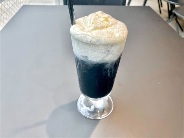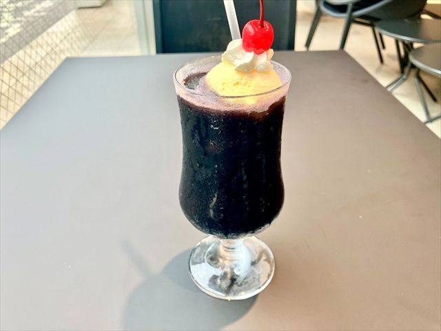 巨峰ソーダは、濃厚だけどさっぱり。上にのっているバニラアイスクリームとの相性抜群です!