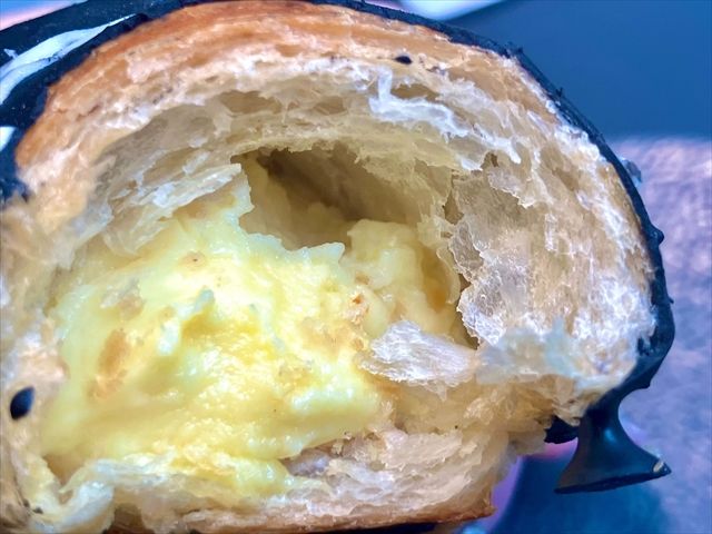 中には、カスタードクリームがたっぷり! 甘いもの好きにはたまらないクロワッサンです。