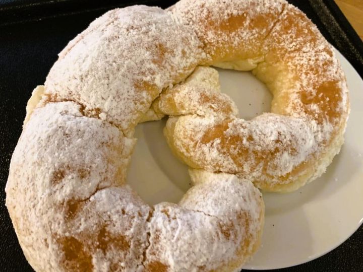 通常の塩気のあるプレッツェルと違い、フワフワ食感のパン生地にはたっぷりの砂糖がまぶされていてとってもおいしいんです。