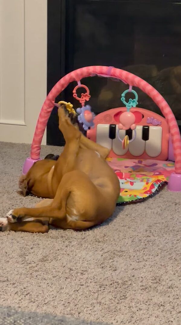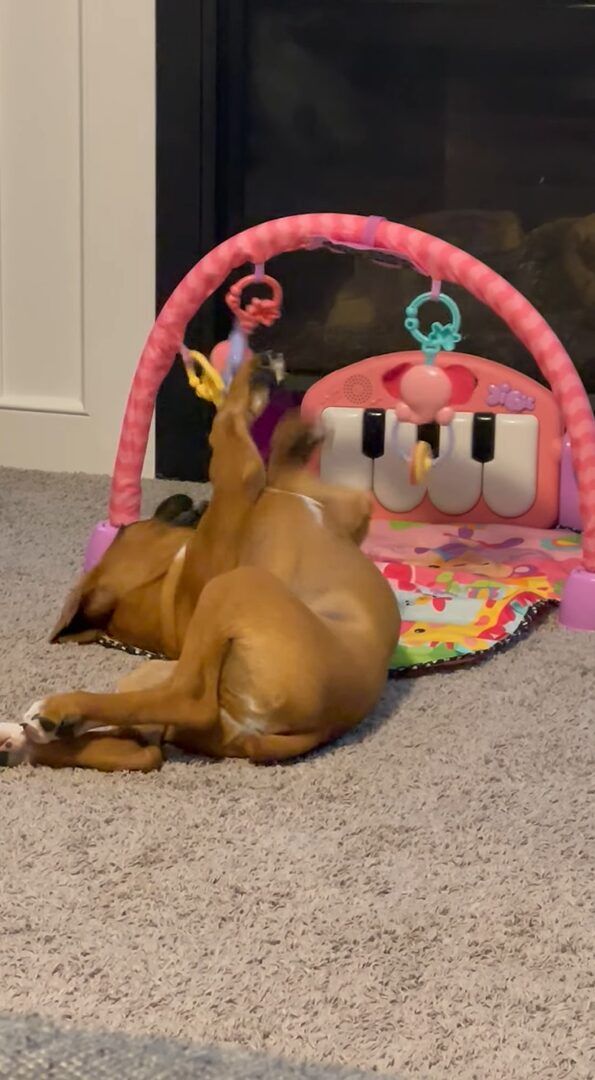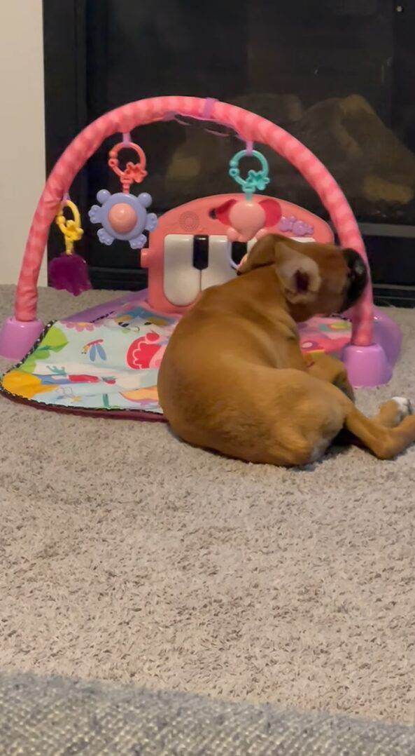 3. 子犬も夢中になるほど楽しいオモチャ?ボクサー犬が遊んでいるのは・・ベビージム!!【アメリカ・動画】