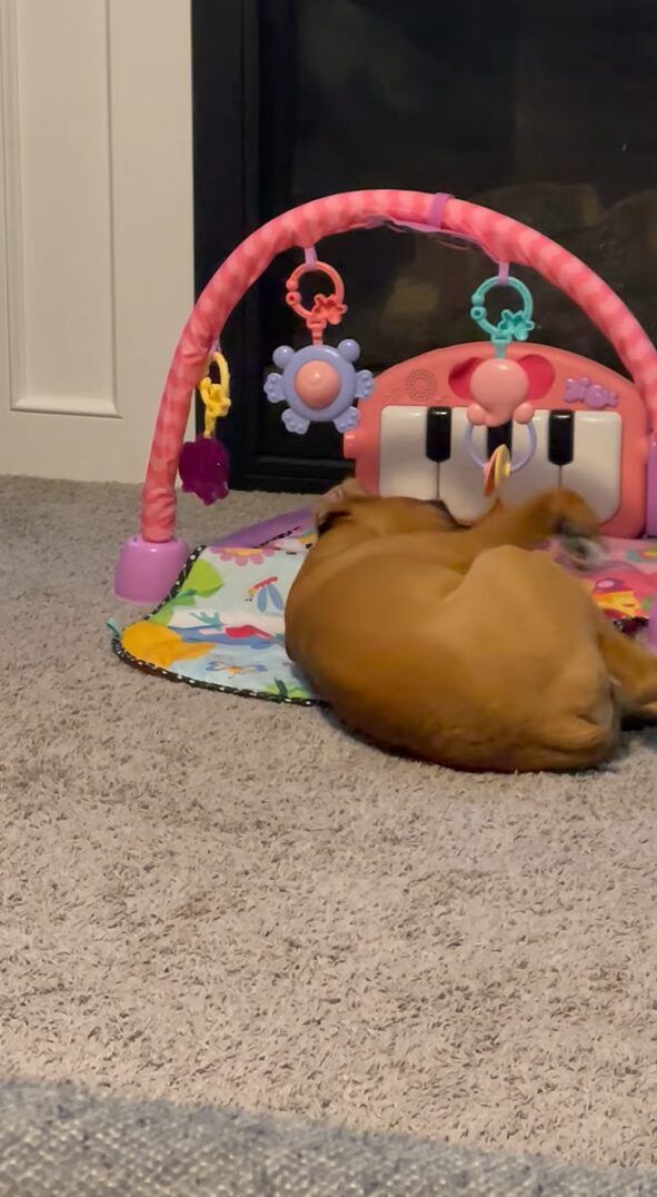 子犬も夢中になるほど楽しいオモチャ?ボクサー犬が遊んでいるのは・・ベビージム!!【アメリカ・動画】