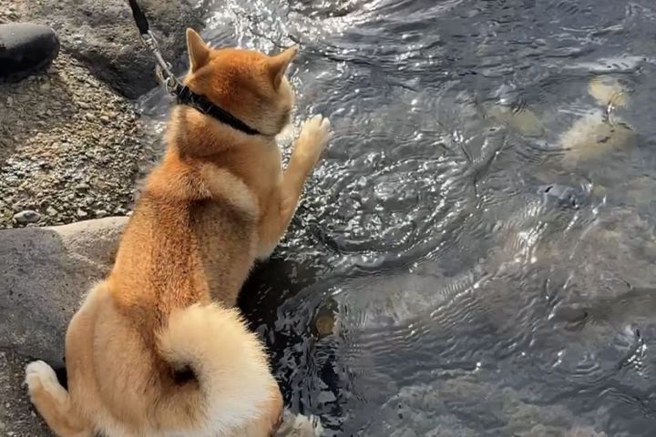 蔵王の大自然のなかにある「別邸 山風木」。緑が多く、まわりはちょうどいいお散歩コースになっています。近くに川が流れていたのでまもるも少し水で遊ばせてみましたが、初めての川にやはり怖がってしまいました……。ただ緑豊かといっても最近では野生の熊や猪が出てくることがあるそうなので、注意が必要です。