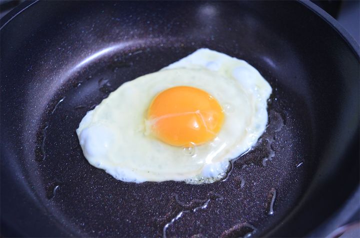 4.目玉焼きを作ったら3の上にのせ、パセリを散らして完成。