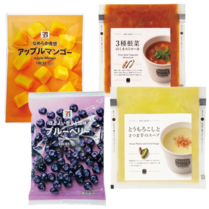 アップルマンゴー¥285ブルーベリー[500g]¥645(ともにセブンプレミアム/セブン-イレブン)