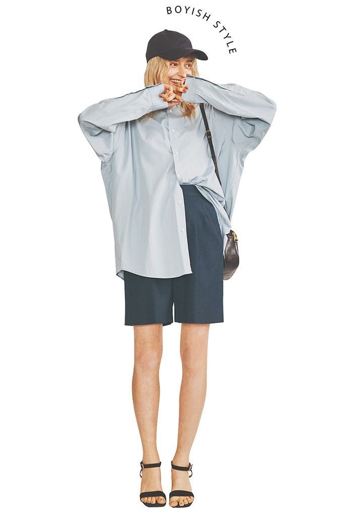 【3】オーバーサイズのシャツ+腰高ハーフパンツ