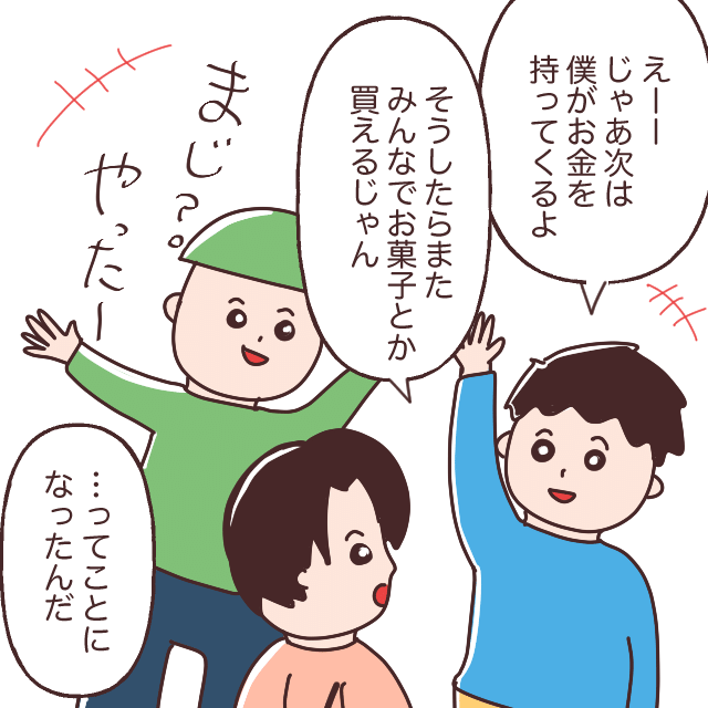 『えーー、じゃあ次は僕がお金を持ってくるよ。そうしたらまたみんなでお菓子とか買えるじゃん』