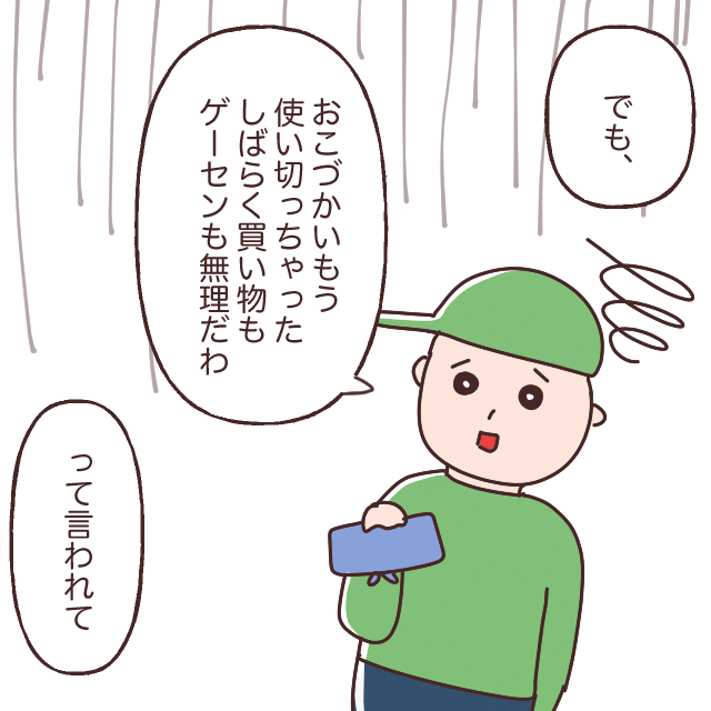「でも・・『おこづかいもう使い切っちゃった。しばらく買い物もゲーセンも無理だわ』って言われて・・」