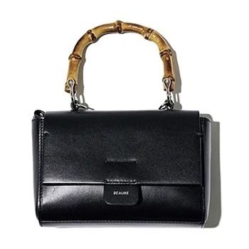 ストラップつきバンブーハンドルバッグ(11×17×4) 13,200円 /BEAURE(キューズ) 品の良さとカジュアルを両立するデザイン。背面にはスマホがぴったり収まるオープンポケットつき。バンブーハンドルがストイックな印象をなごませる役割。
