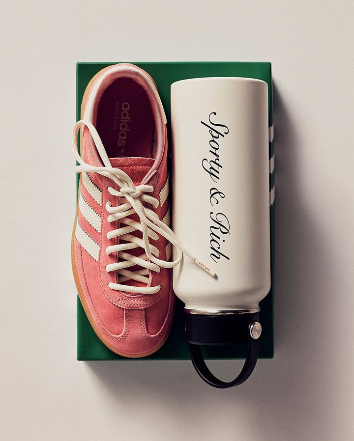 今コラボレーションは、「ADIDAS ORIGINALS」のハンドボールの競技用シューズとして誕生した「HANDBALL SPEZIAL」を、「SPORTY & RICH」の創設者 Emily Obergが再構築し、3色のパステルカラーでラインナップ。
