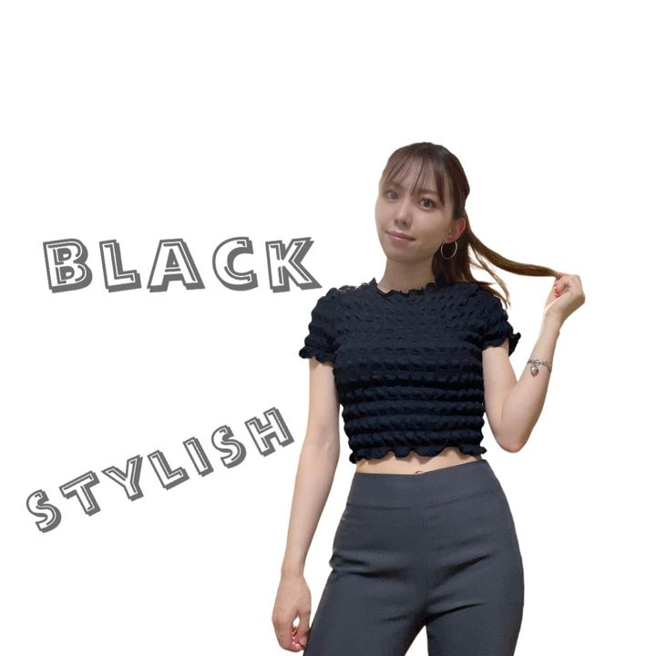 ショート丈のトップスなので、ハイウエストパンツと合わせるとスタイル⤴️目指せちゃいますね🥺💪