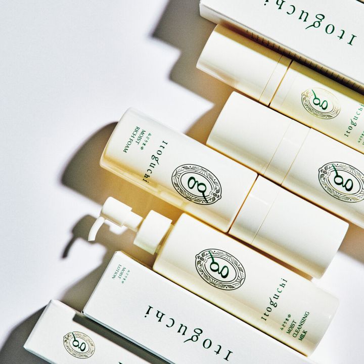4品のなかでも最も〈Itoguchi〉らしさを感じさせるのは、やはりシルク成分のみでUVカットができる保湿クリーム「モイストクリーム」。人工的な感じが一切せず、シルクで肌をバリアしているという、この上ない贅沢感が。また、みどりまゆの保湿力をダイレクトに感じる化粧水「モイストローション」も、シルクのヴェールに肌が包み込まれる感覚。どのアイテムも、荒れがち乱れがちな肌に、スッと手を差し伸べ寄り添ってくれる……そんなメンテナンス力を感じさせる。素材の素晴らしさを研究し、存分にその特徴を生かしているからこそ、肌も素直に反応してくれるのだと、新たな気づきを与えてくれるシリーズだ。