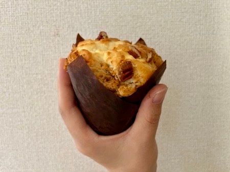 こちらのマフィンはどの味を選んでも1個378円(税込)3個なら1,080円(税込)とお得になるのでお勧めです! 少しお高い?なんて思ったそこのあなた、いえいえ違います。実際に大きさを知ったらお得に感じてしまうはず。 大人の握りこぶし程の大きさでズッシリとしたマフィンは、ひとつで十分お腹が満たされます。 色々な味を試したい場合には1日1個、もしくは誰かとシェアするほうが良さそうですね。 ちなみに賞味期限は当日を含めて3日間。翌日以降のご褒美にとっておきたい場合には冷蔵庫に入れて、いただく前にレンジで30~40秒ほど温めると美味しさが復活するようです!