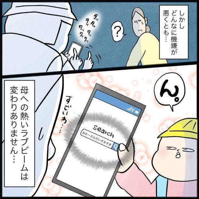 不機嫌とお母さんへの愛情表現、正反対な感情にも思えますがどちらも全力ですね!(笑)表情は不機嫌でも真っすぐに愛を伝えてくれるスイちゃん、可愛いです!